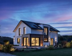 Das eineinhalbgeschossige Haus mit Satteldach ist dank seiner bodentiefen Panoramafenster lichtdurchflutet und der Garten lädt gleich über mehrere großzügig geplante Terrassentüren ein. Das Haus bietet auf beiden Geschossen eine Gesamtfläche von fast 175 m² an und sorgt für genügend Entfaltungsmöglichkeiten aller Familienmitglieder. Dieses Haus dass dank der großzügigen Raumplanung sehr konkret auf die modernen Lebensumstände von Familien eingeht und jedem Bewohner genügend Platz bietet. Die Zukunft wird klimafreundlich.