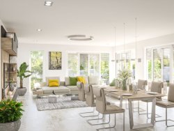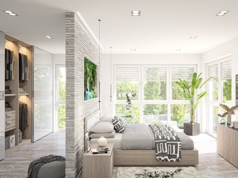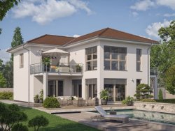 Nicht nur äußerlich eine Klasse für sich - auch im Innenbereich werden neue Maßstäbe gesetzt: Besonders beeindruckend ist die großzügige und moderne Interpretation von Kochen und Essen. Hier führt eine geradläufige Treppe nach oben in die offene, zentral angeordnete Galerie, die sich wie eine Brücke über den Essbereich spannt. Diese repräsentative Konstellation mit einem fast sechs Meter hohen Luftraum und großen Glasflächen in der Fassade setzen einen besonders beeindruckenden Akzent. Ein weiteres Highlight: der über 50 m² große Bereich, der einzig und allein für die Eltern reserviert ist. Mit Schlafzimmer, zwei Ankleidezimmern und Wellnessbad mit integrierter Sauna. Besonderen Komfort bieten außerdem die beiden üppig dimensionierten Kinderzimmer: Jedes von ihnen verfügt über ein eigenes Dusch-WC. Mit diesem Haus bekommt jeder Bewohner seinen eigenen und unabhängigen Bereich zur freien Entfaltung.